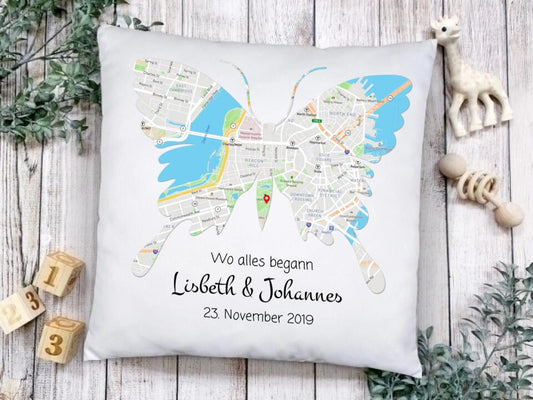 Hochzeitsgeschenk Personalisiertes Kissen im Stadtkarten Design, Wo alles begann, Geschenk zur Hochzeit, Valentin, Hochzeitstag, Geburtstagsgeschenk