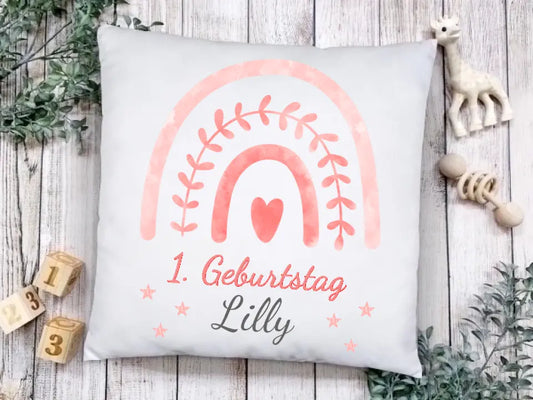 1. Geburtstag personalisiertes Babykissen mit Regenbogen-Geburtstagsgeschenk, Babygeschenk Kissen-Weihnachtsgeschenk rosa