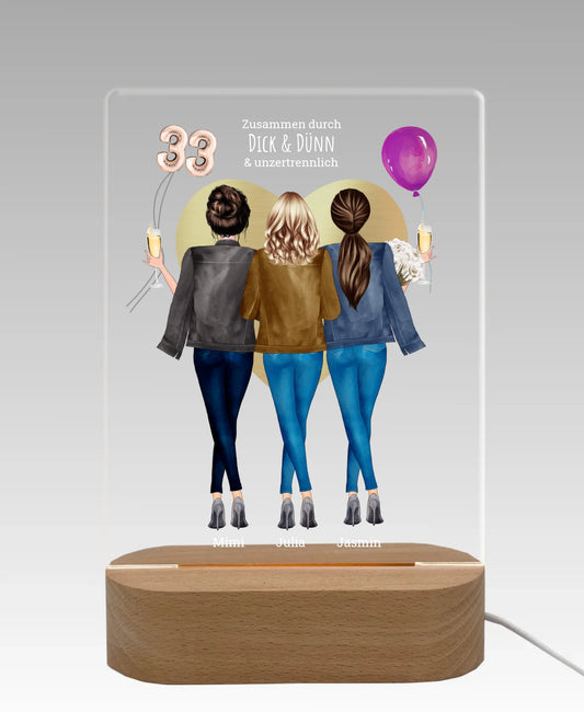Personalisiertes LED-Deko Licht aus Acrylglas "3 Freundinnen" Geschenkidee