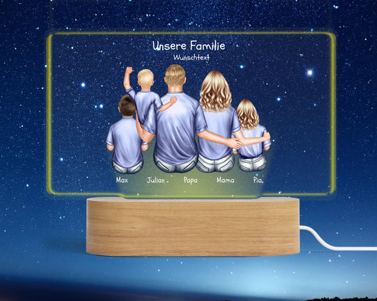 Personalisiertes LED Deko Licht ''Familie mit 3 Kindern'' Geschenk Geburtstag - Muttertag / Vatertag - Weihnachtsgeschenk