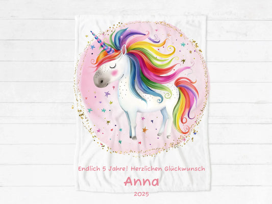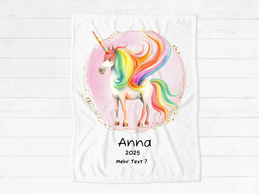 Personalisiertes Kuscheldecke Mädchen Einhorn - Geburtstagsgeschenk