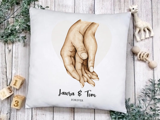 Geschenk für Paar / Familie Kissen personalisiert | Händemotiv Namen | Geschenk Hochzeitstag, Valentinstag, Jahrestag