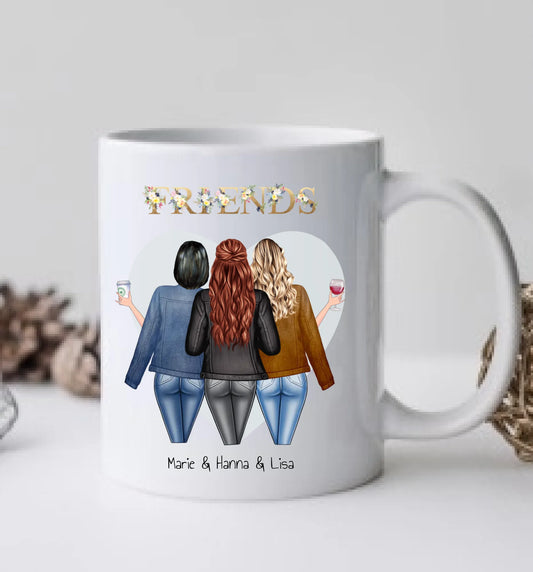 Personalisierte Tasse 3 Beste Freundinnen, Kaffeebecher, Geschenkidee Freundin, Schwester, Kollegin, Weihnachtsgeschenk