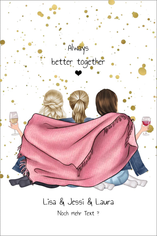 Personalisiertes Poster Geschenk - 3 Beste Freundinnen Geburtstag - Best Friends