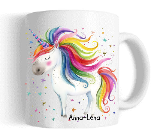 Personalisierte Emaille Kindertasse Einhorn mit Namen - Kinderbecher Geschenk Geburtstag