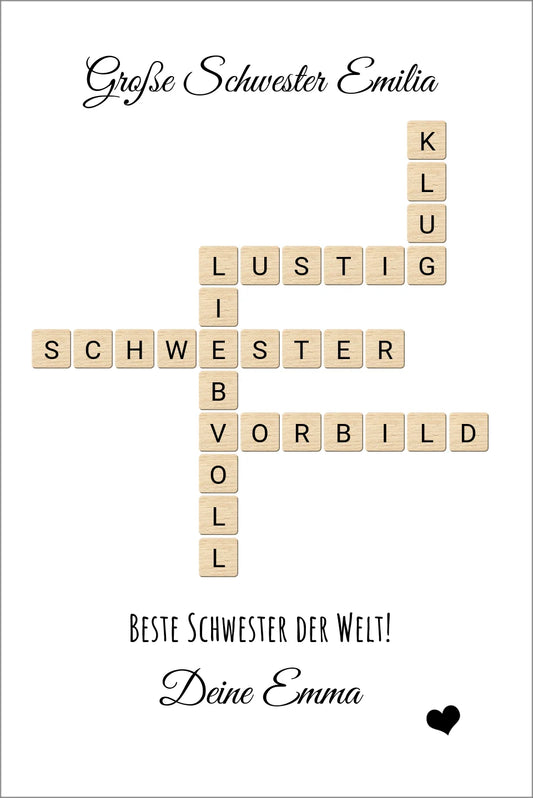 Schwester Weihnachtsgeschenk personalisiert Bild im Scrabble Style | Geburtstagsgeschenk Schwester mit Namen