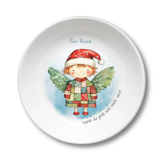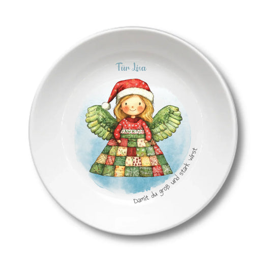 Personalisierter Weihnachtsteller / Nikolausteller mit Schutzengel & Namen, Geschenk für Kinder