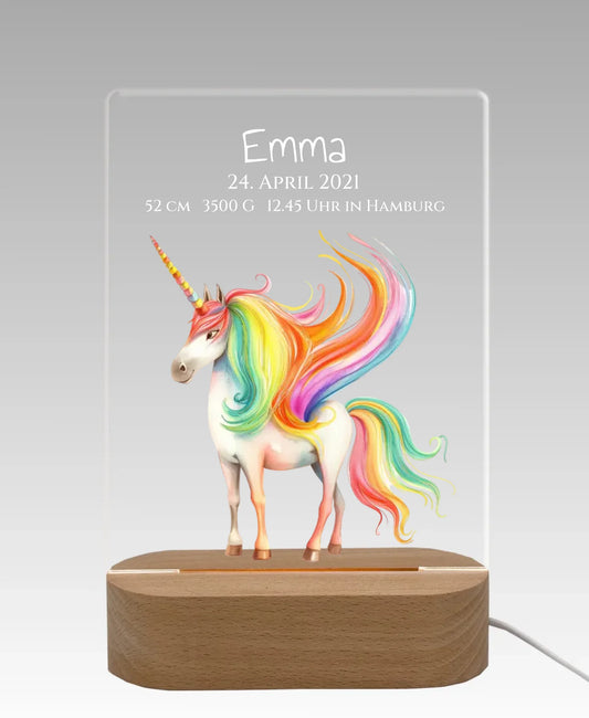 Personalisiertes Acryl Nachtlicht für Babys | Geburtsanzeige Regenbogen Geschenk zur Geburt & Taufe weiß