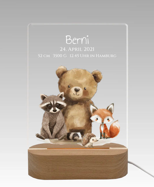 Personalisiertes LED Nachtlicht Waldtiere für Babys zur Gebut & Taufe - Kinderzimmer Deko