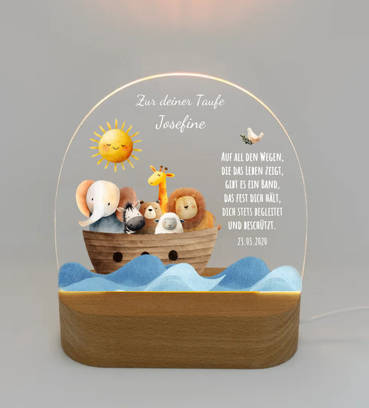 Zur Taufe Taufgeschenk Mädchen / Junge - Personalisiertes Baby & Kinder LED Nachtlicht Arche Noah - Geschenk Geburt