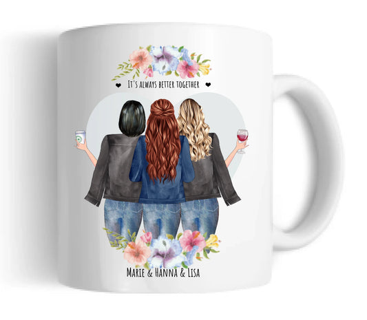 Geschenk Geburtstag 3 Beste Freundinnen Tasse personalisiert - Beste Freundin Geschenk | Schwester | Mama | Kollegin