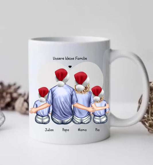 Personalisierte Tasse Familie mit 2 Kindern - Nikolausgeschenk, Weihnachtstasse personalisiertes Weihnachtsgeschenk Kaffeebecher