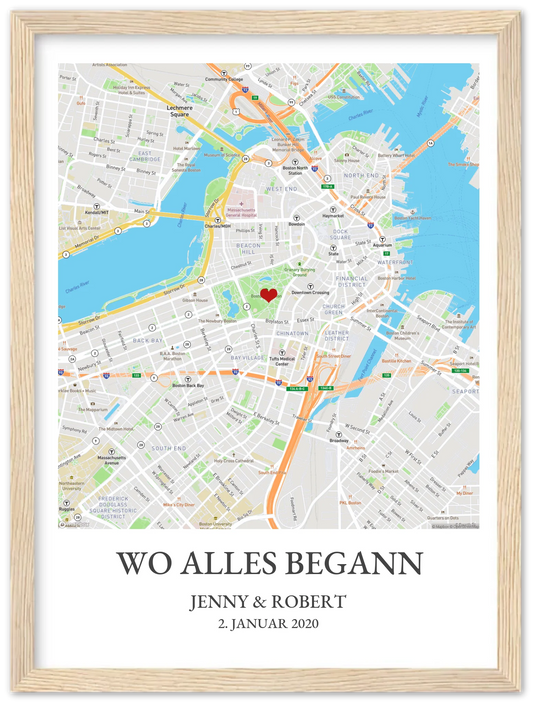 Ein personalisiertes Poster, das den Ort zeigt, an dem sich Ihre Wege zum ersten Mal gekreuzt haben, ist eine wunderbare Möglichkeit, eine besondere Erinnerung zu bewahren. Sie können eine Karte des Ortes mit einem Datum und einer liebevollen Nachricht versehen. Dieses Geschenk wird Ihren Partner daran erinnern, wie alles begann und wie weit Sie beide schon gekommen sind.