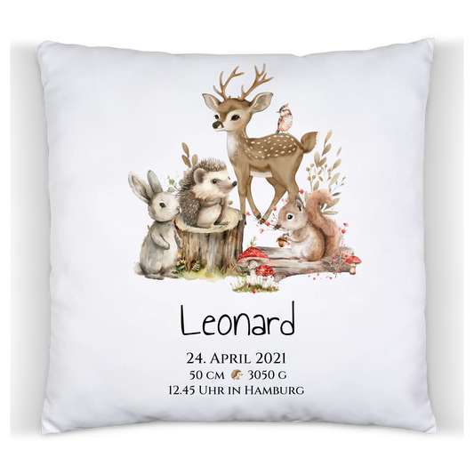 Personalisiertes Kinder Kissen Geschenk zur Geburt und Taufe | Waldtiere Kissen & Kinderdecke