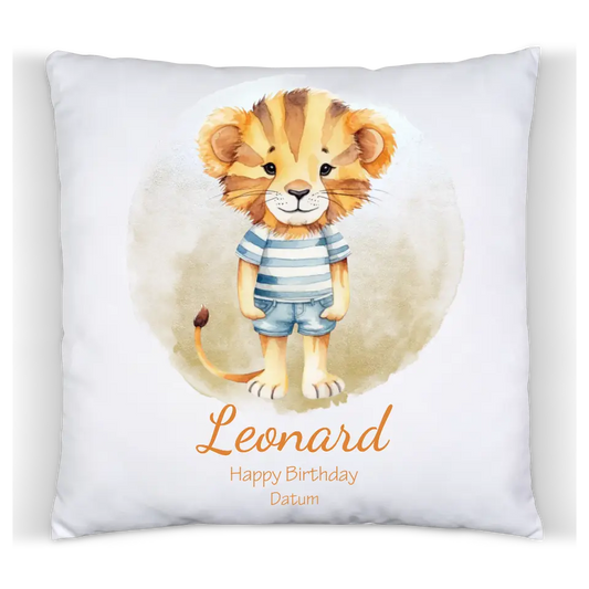 Geburtstag Geschenk Mädchen Junge | Weihnachtsgeschenk Kinder Kissen Geschenk mit Name personalisiert Löwe
