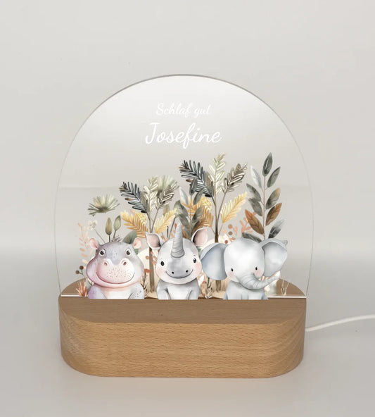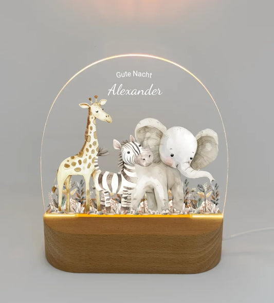 Personalisiertes Baby & Kinder Nachtlicht 1-3 Lieblingstiere Safari mit Namen Geburtsgeschenk & Taufgeschenk