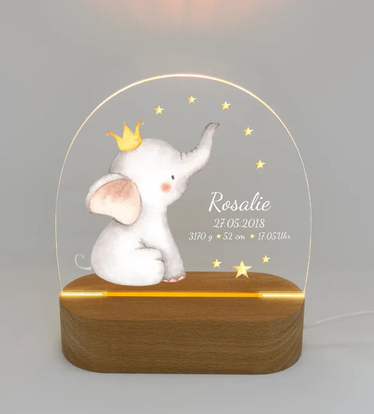 Personalisiertes Baby & Kinder LED Nachtlicht Elefant mit Geburtsdaten Geburtsgeschenk & Taufgeschenk Junge
