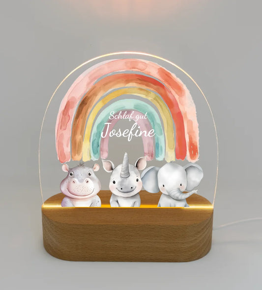 Personalisiertes Baby & Kinder LED Nachtlicht 1-3 Tiere Safari mit Namen Geburtsgeschenk & Taufgeschenk