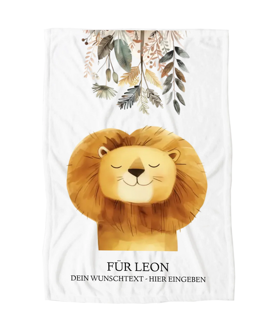 Personalisiertes Kinderdecke Löwe mit Namen Mädchen / Junge Safari Tiere/Dschungeltiere