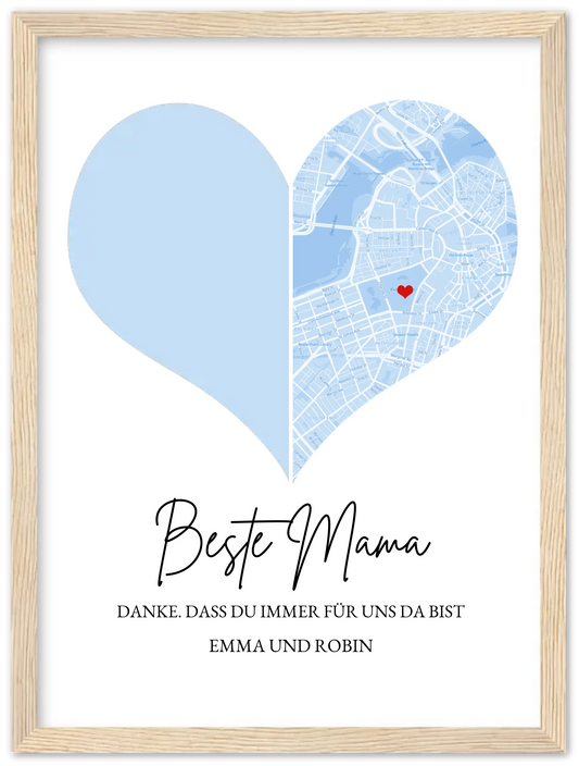 Für die beste Mama - FotoPoster zum Muttertag Geschenk zum Muttertag Vatertag Geburtstag | Fotoposter Stadtkarte Bild