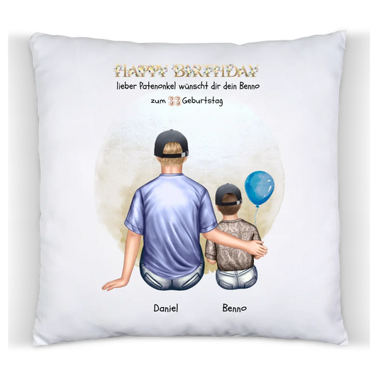 Geburtstagsgeschenk Patenonkel mit Patenkind Mädchen oder Junge Deko Kissen,