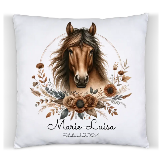 Kinder Weihnachtsgeschenk, Geburtstagsgeschenk oder Einschulungsgeschenk | Kuscheliges Kissen für Mädchen mit Pferd | Kinderzimmerdeko