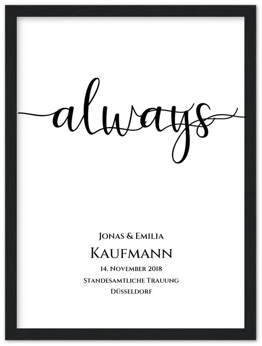 Personalisiertes Hochzeitsposter "ALWAYS" | Hochzeitsgeschenk mit Namen und Datum
