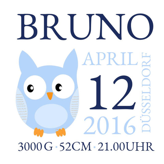 Eule- Personalisiertes Geburtsanzeige mit Namen und Geburtsdaten - Geburtskissen - Geschenk zur Geburt - Geschenk zur Taufe - Taufgeschenk