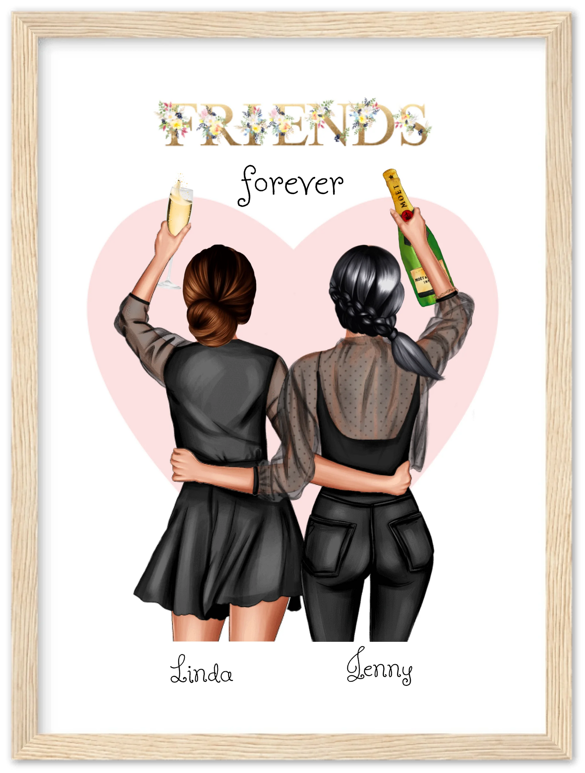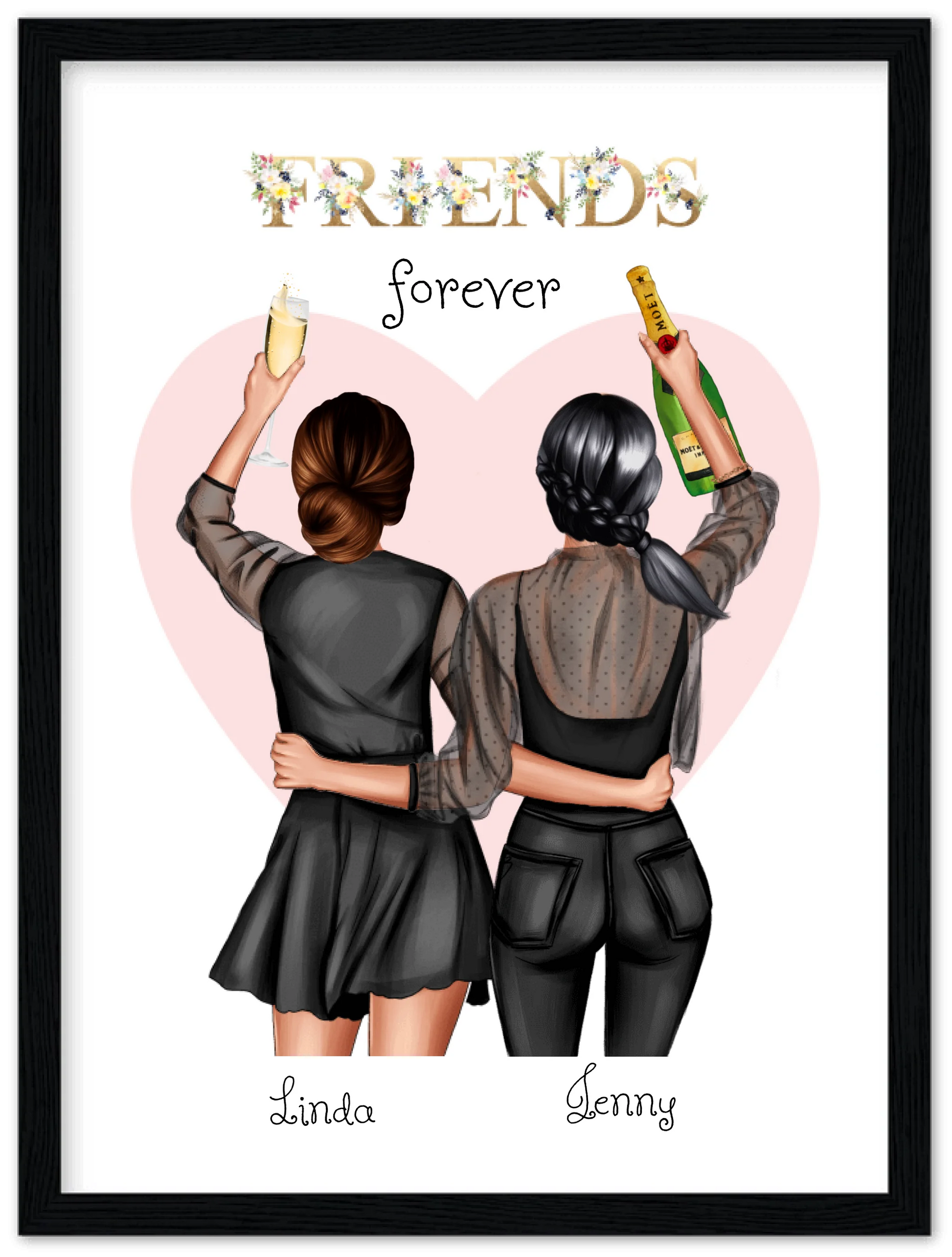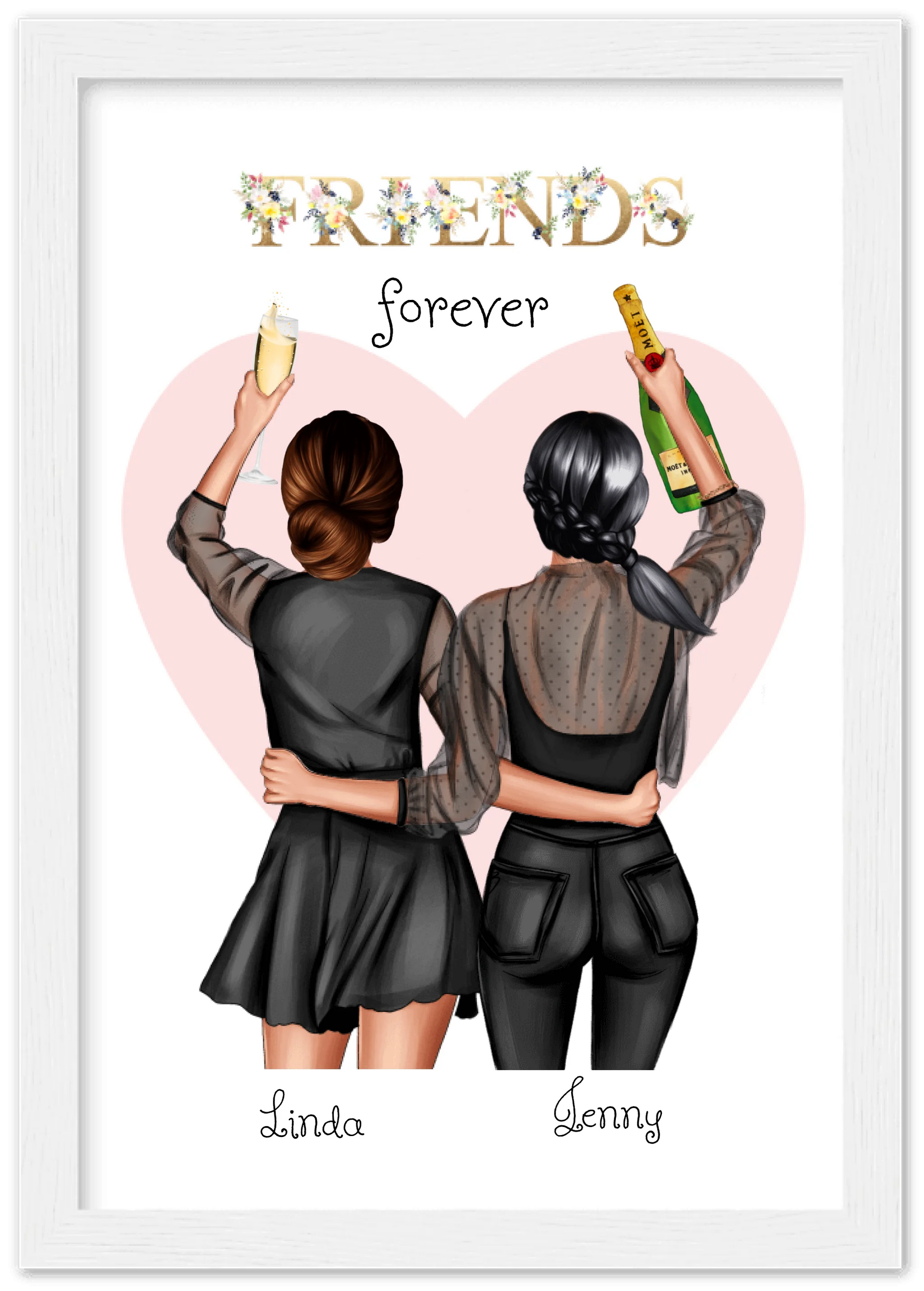 2 Beste Freundinnen Poster gerahmt - 2 Beste Freundinnen Bild personalisiertes Geschenk - Geburtstagsgeschenk - Weihnachtsgeschenk