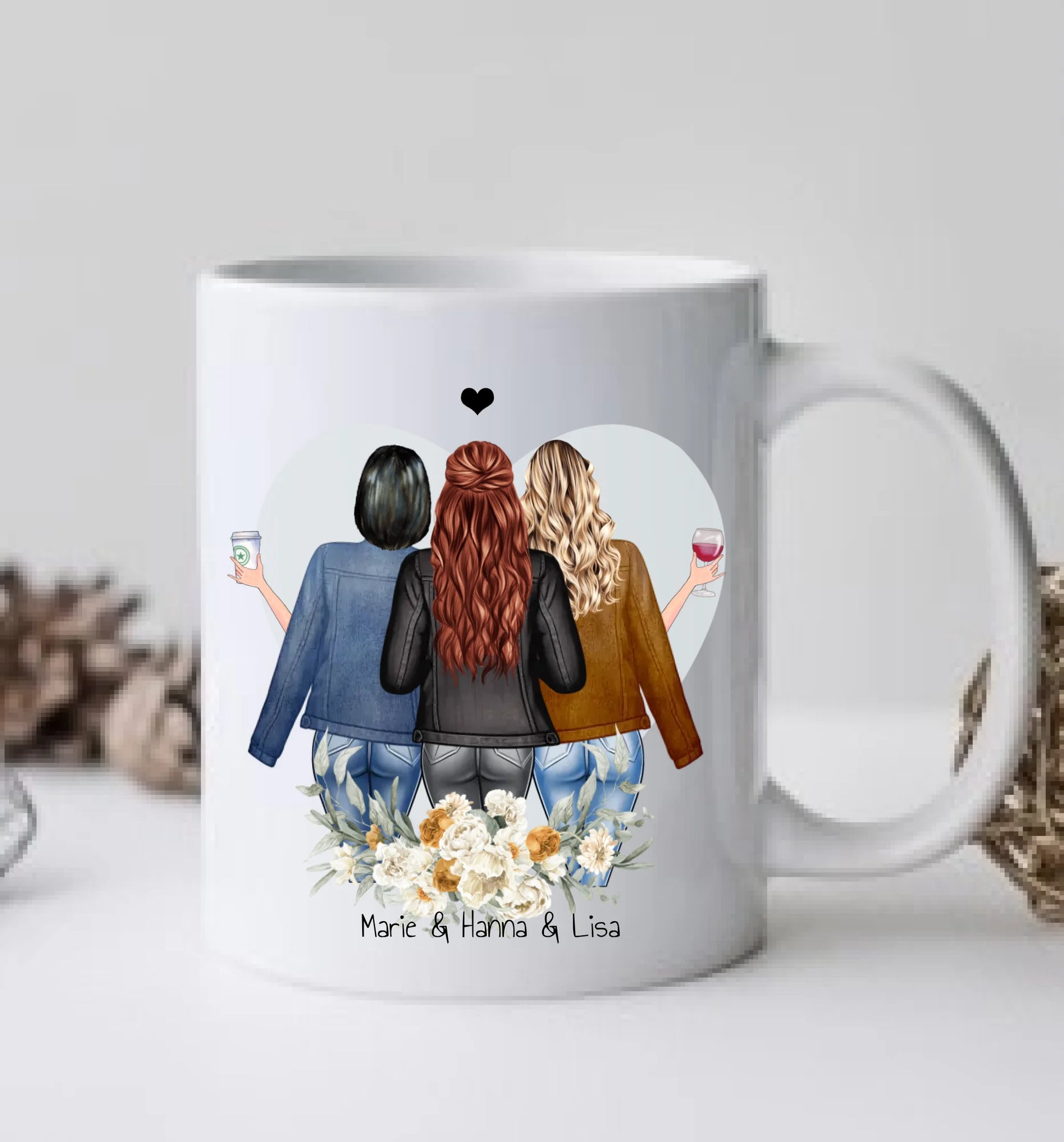 3 Beste Freundinnen Tasse mit Spruch, Personalisierte Kaffeebecher, Geschenk Familie, Schwester, Kollegin, Tassendruck