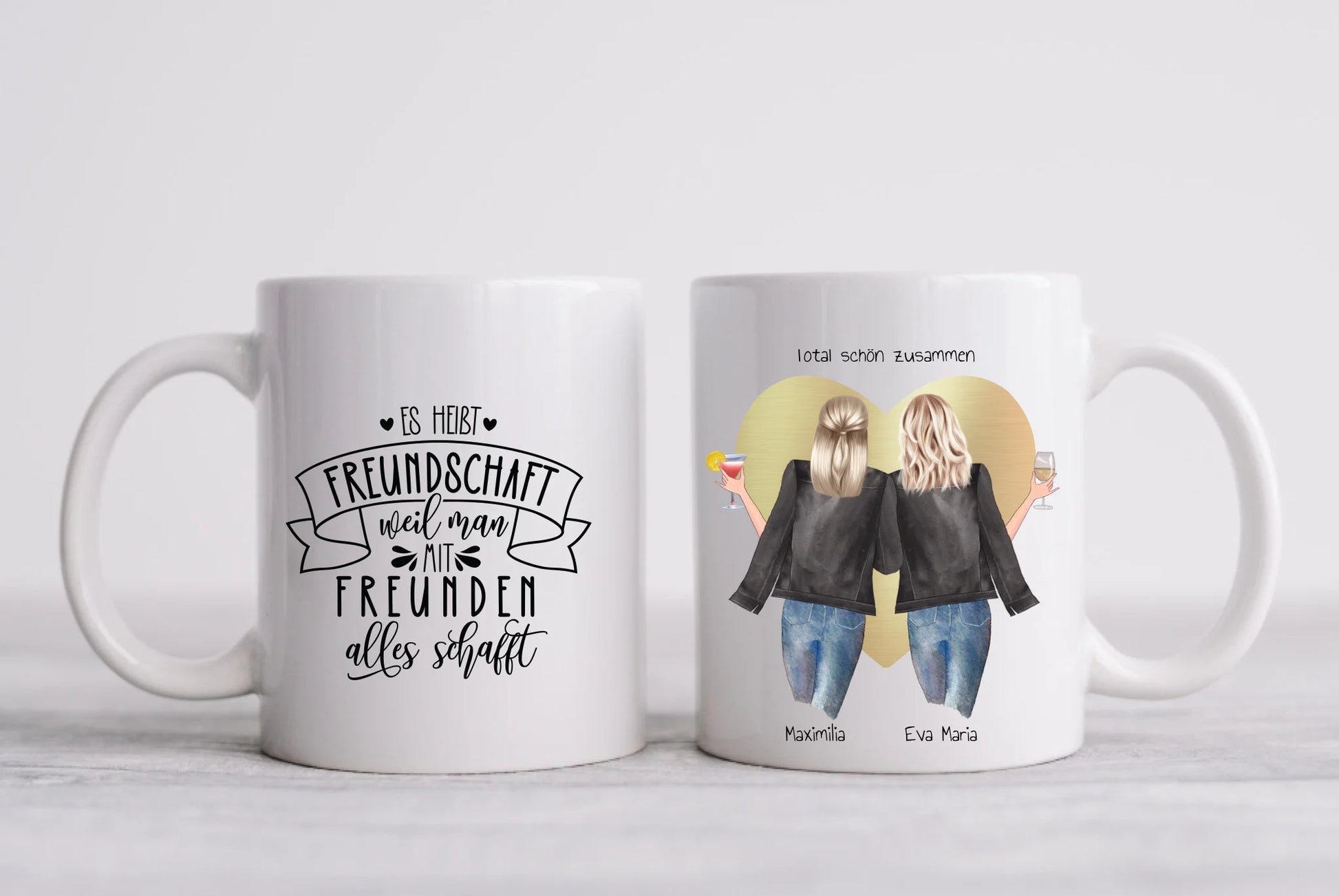 Das perfekte personalisierbare Tassen-Geschenk für beste Freunde & Freundinnen, für die Mama, den Papa, die Schwester, den Bruder, für die ganze Familie mit verschiedenen Bild-Motiven und Sprüchen oder Glückwünschen veredelt.