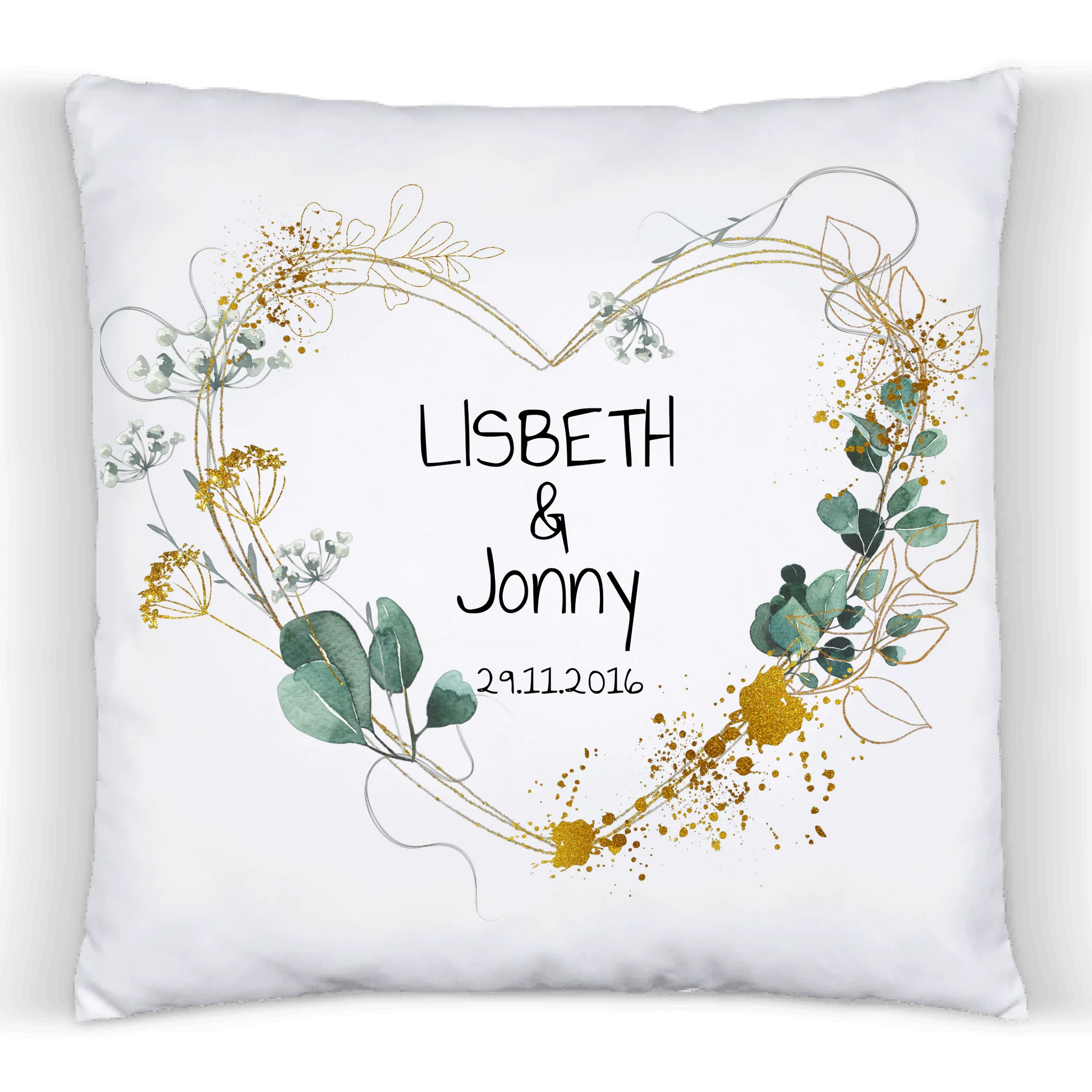 Hochzeitsgeschenk | Valentinstag-Geschenk | personalisiertes Hochzeitskissen für das Brautpaar mit Namen und Datum | Geschenk zur Hochzeit, Jahrestag, Valentin | Zeitraum-Kunstdrucke