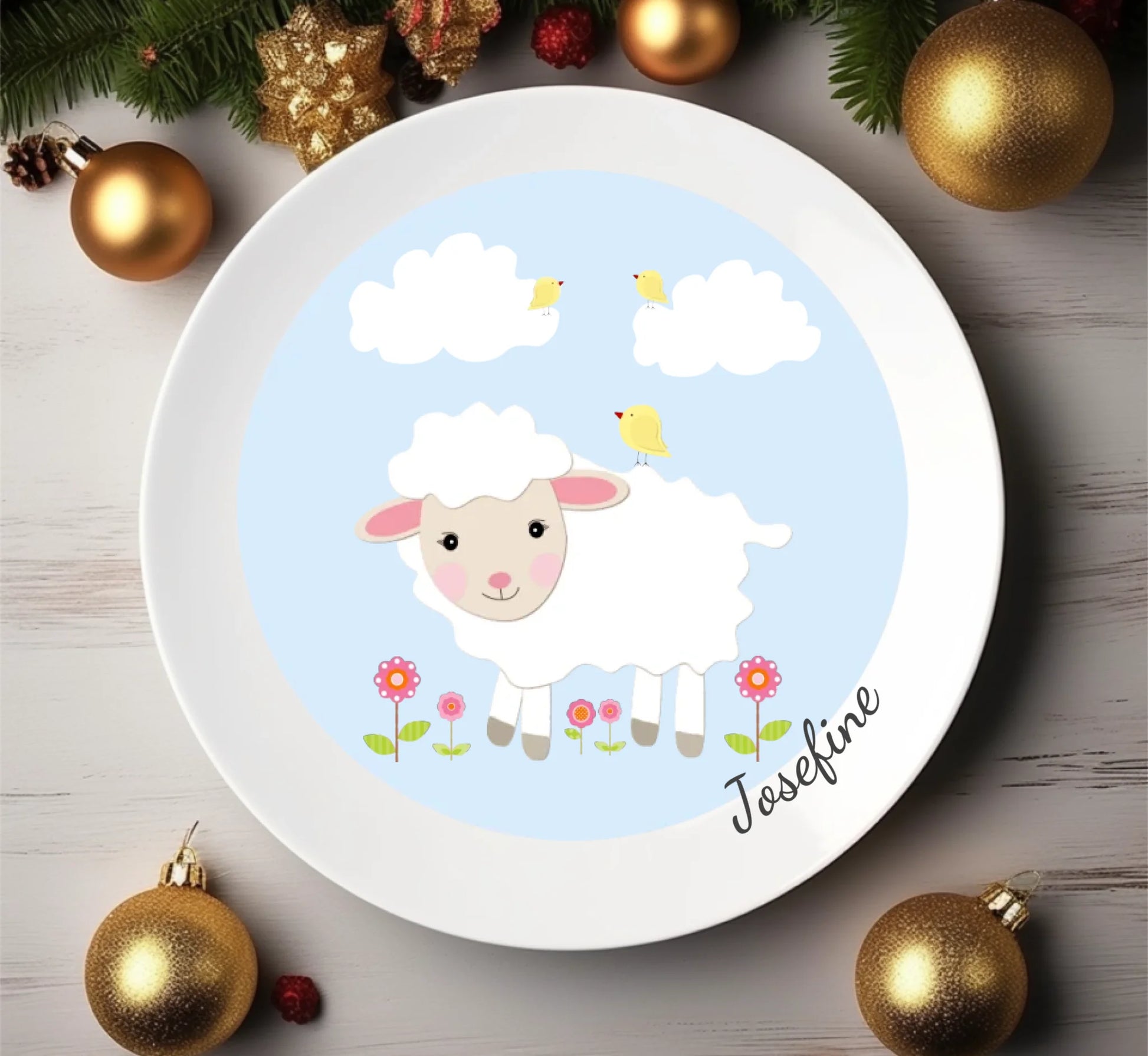 Kinderteller Schäfchen mit Namen personalisiert, Kindergeschirr Geschenk zur Taufe, Geburt, Geburtstag und Weihnachten