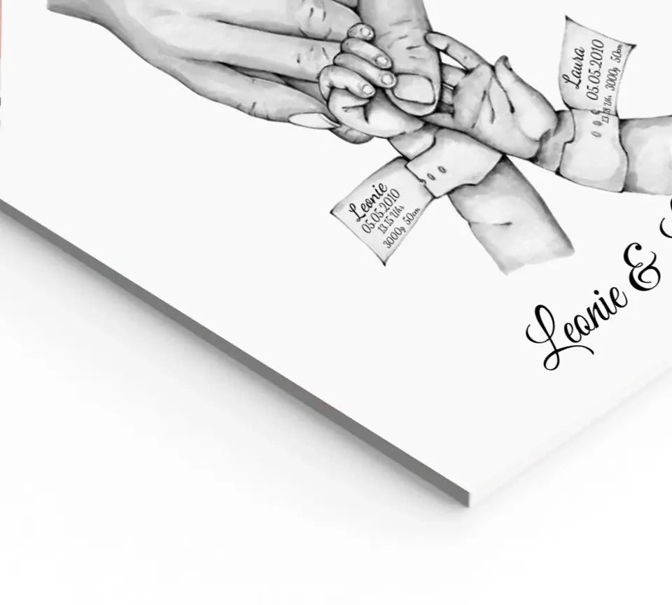 Personalisierte Geburtsanzeige für Zwillinge | Geburtsgeschenk Zwillinge Poster Geschenk zur Geburt | Hände Motiv