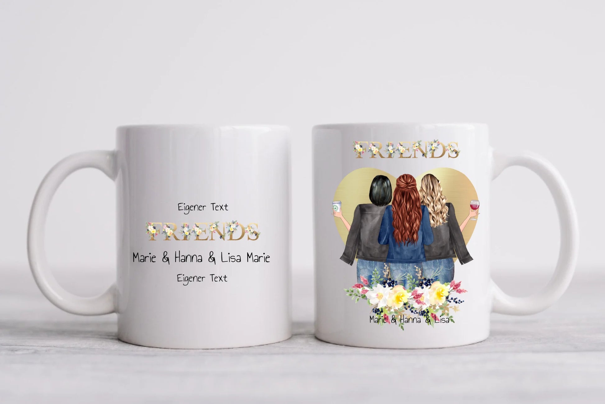 Personalisiertes Geschenk Tasse 3 Beste Freundinnen, Kaffeebecher, Geschenkidee Freundin, Weihnachtsgeschenk Schwester