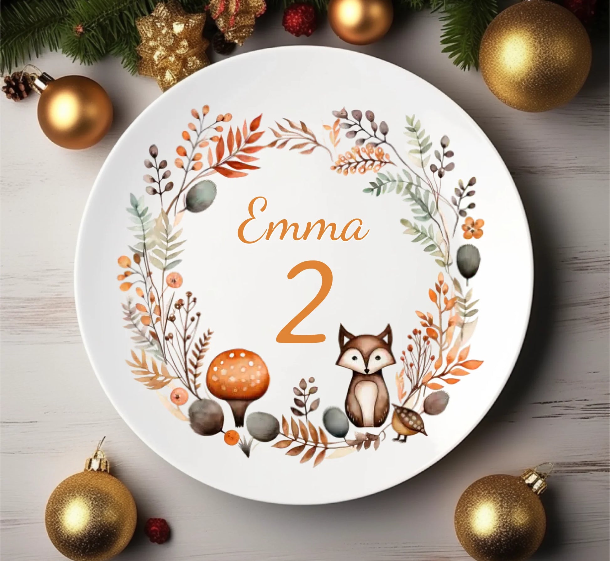 Personalisierter Kinderteller Kranz mit Fuchs Kindergeschirr Teller 1. Geburtstag, Geburtstagsgeschenk, Geschenk Einschulung