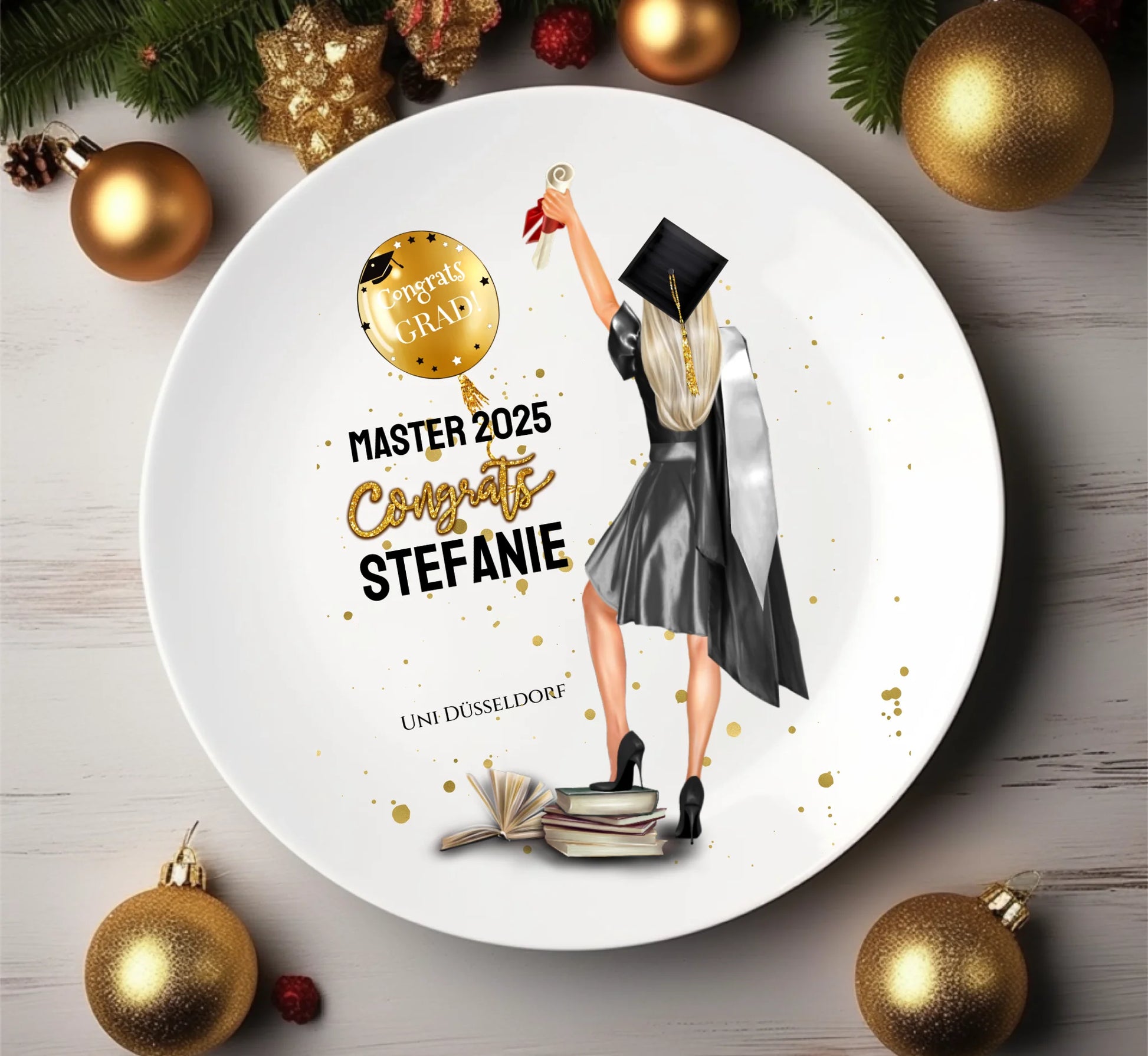 Personalisierter Teller - Abschlussgeschenk zum Abi, Bachelor, Doktor, Master mit Namen und Spruch zur Erinnerung