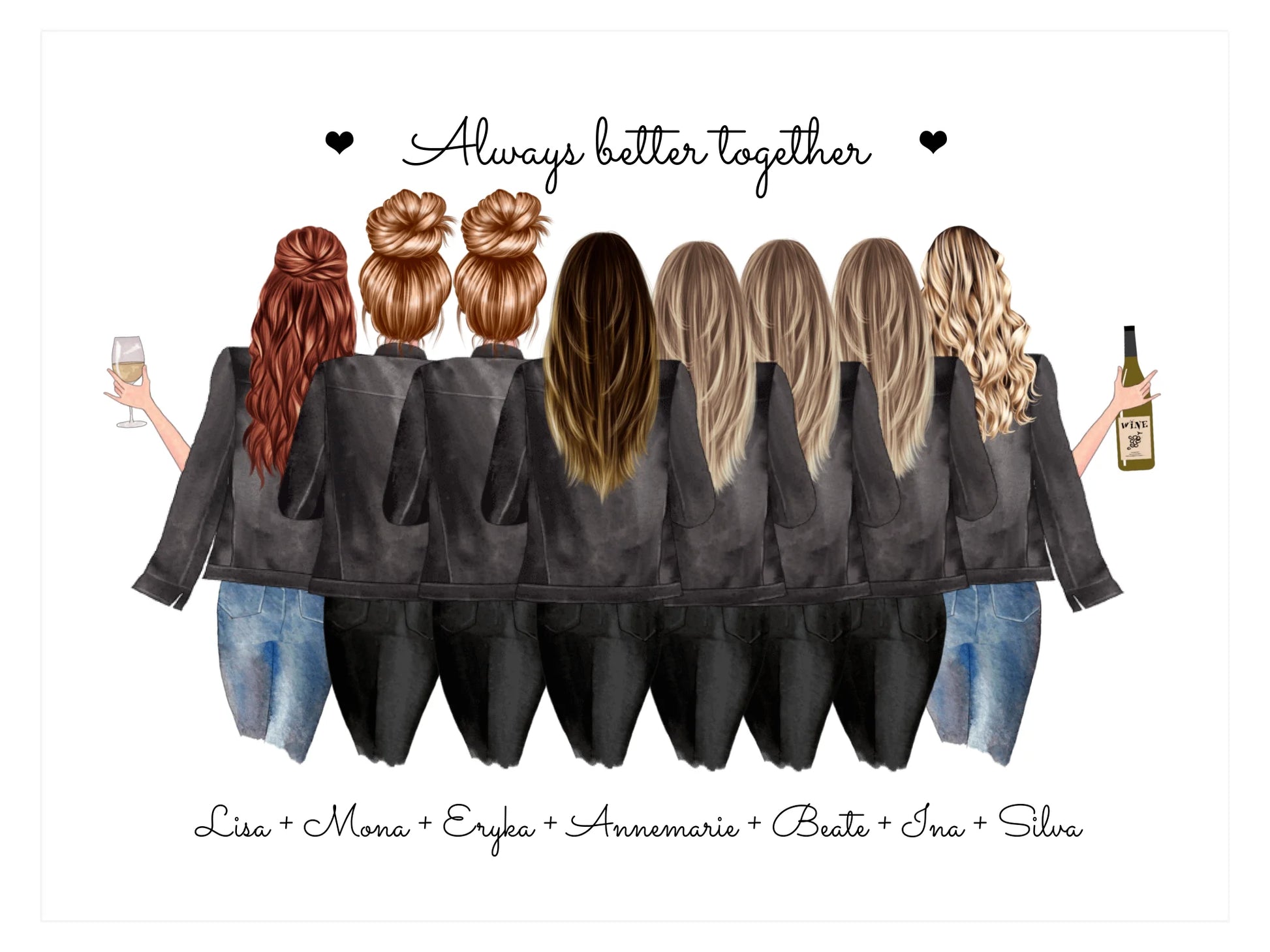 8 Freundinnen Bild individuell mit Namen Spruch personalisieren - Geburtstagsgeschenk Poster