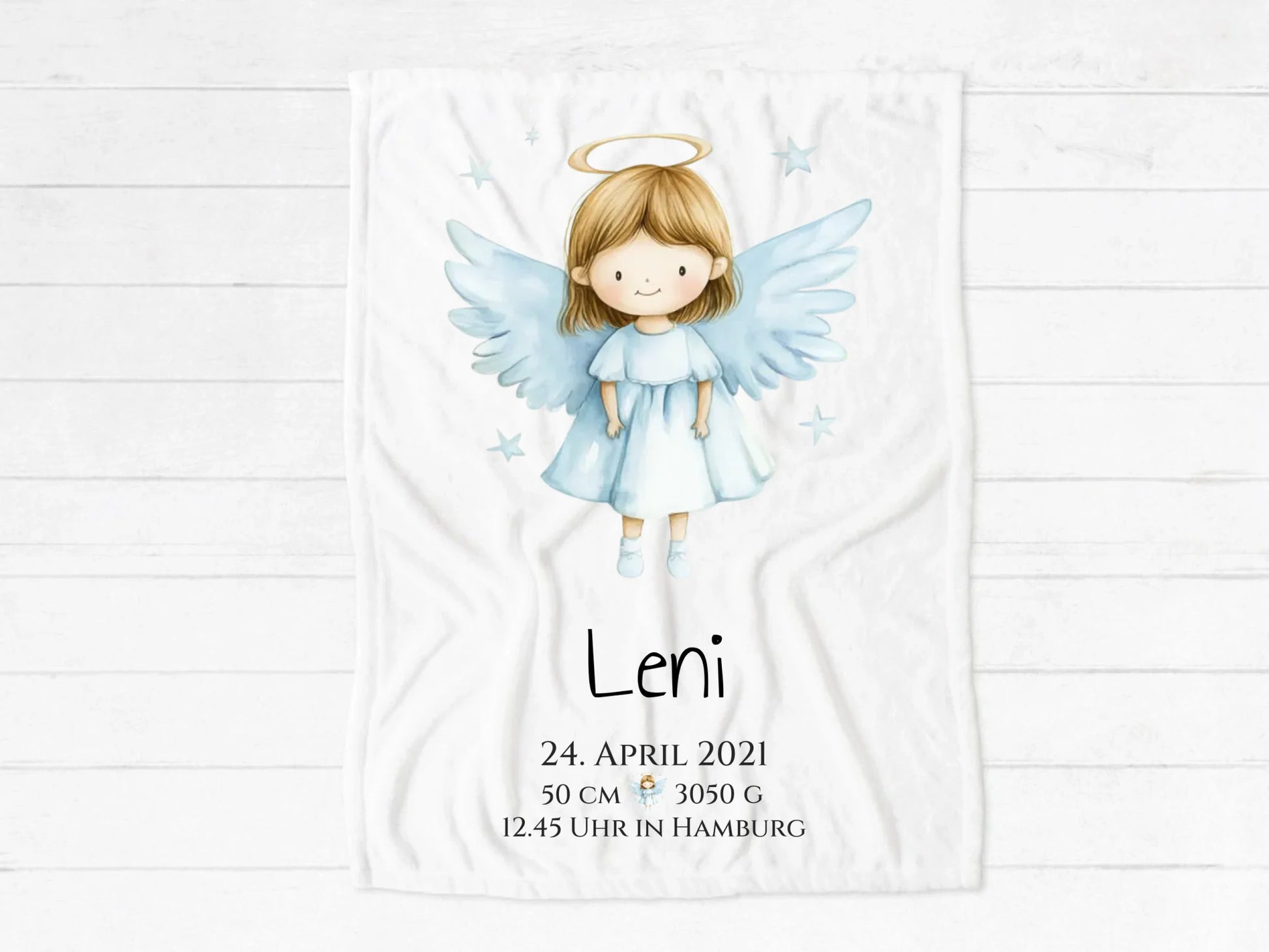Schutzengel - Personalisiertes Geburtsgeschenk / Taufgeschenk: Decke mit Name und Geburtsdaten