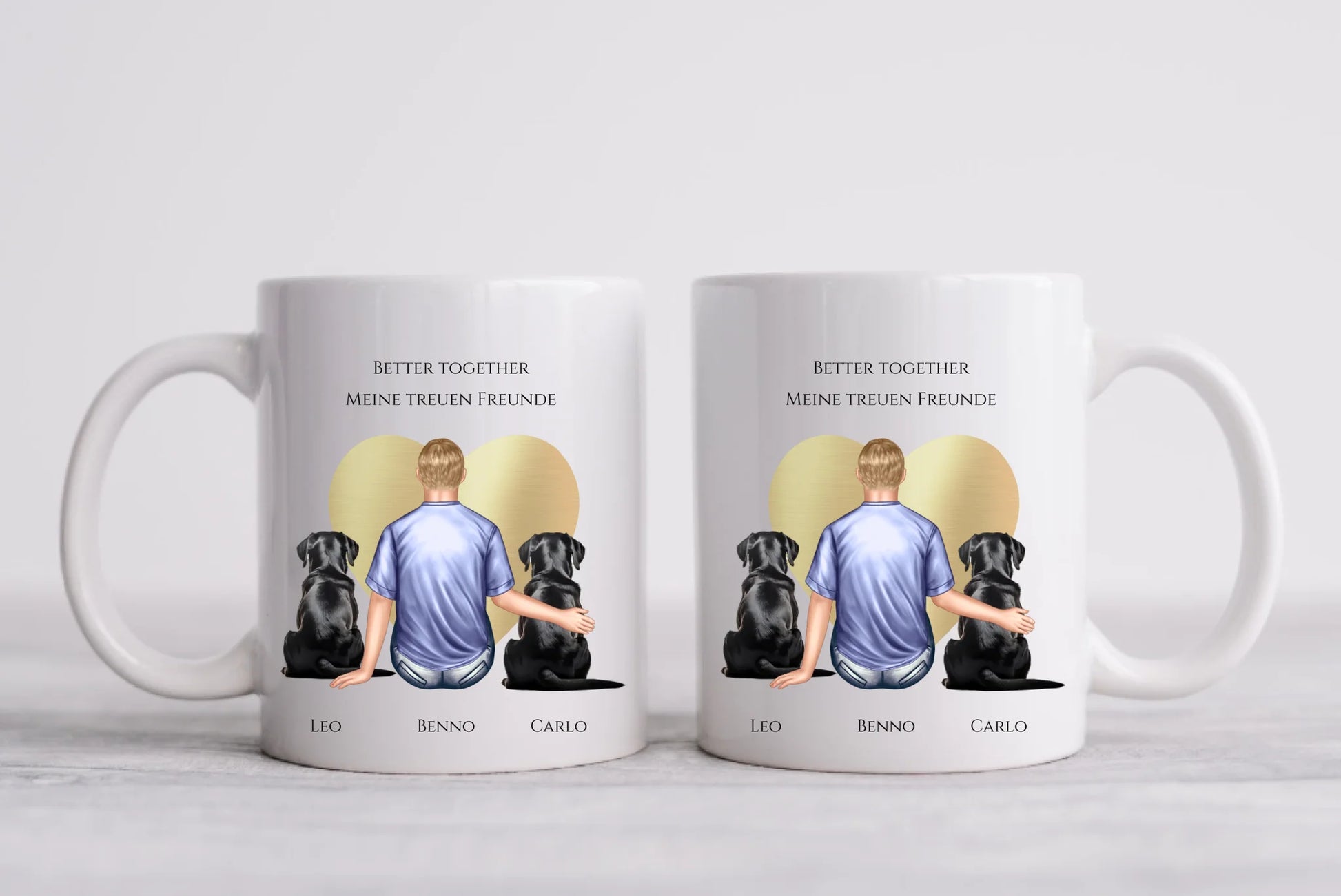 Personalisierte Tasse Geschenk Hundebesitzer - Mann/ Freund mit 2 Hunden - Geburtstagsgeschenk Weihnachtsgeschenk