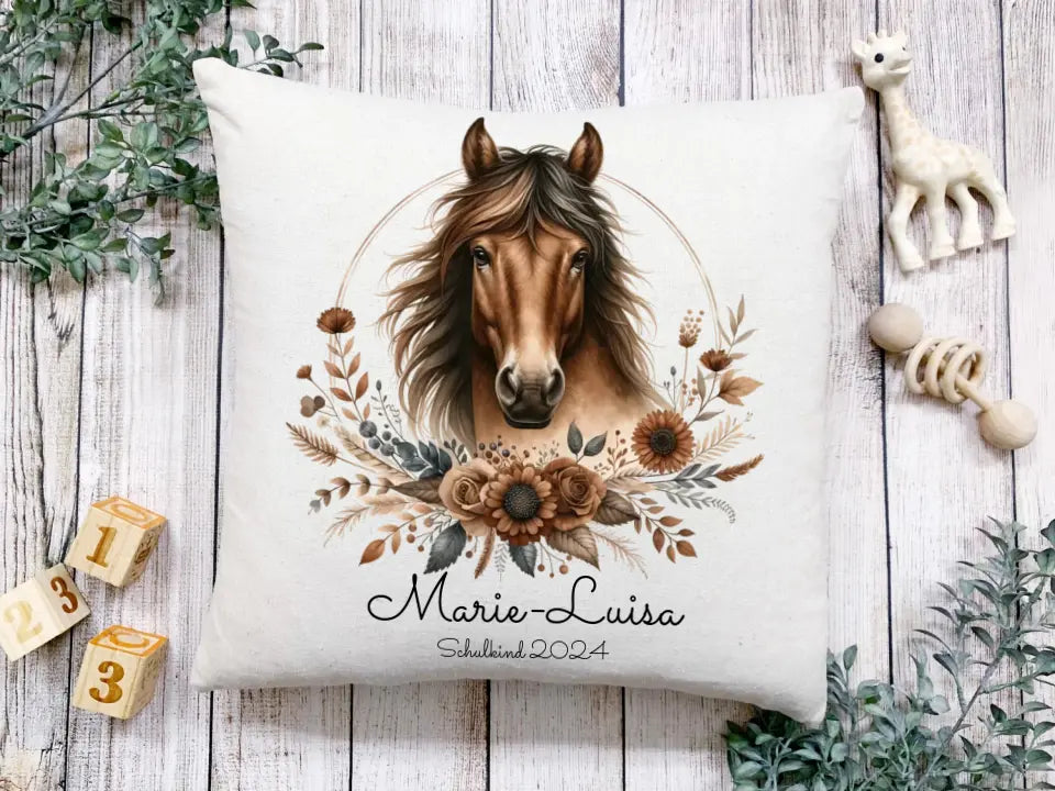 Schulanfang Kindertasse Schulkind oder Geburtstagsgeschenk - Emaille Kinderbecher Pferd Einschulung mit Namen