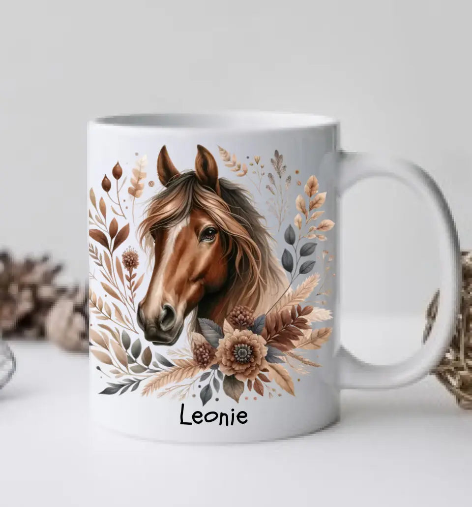 Schulanfang Kindertasse Schulkind oder Geburtstagsgeschenk - Emaille Kinderbecher Pferd Einschulung mit Namen