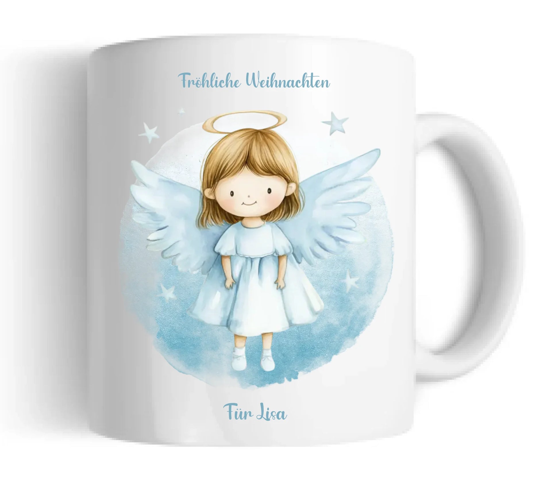 "Schutzengel" Tasse - Personalisierte Tasse mit Engel und Namen für Kinder blau