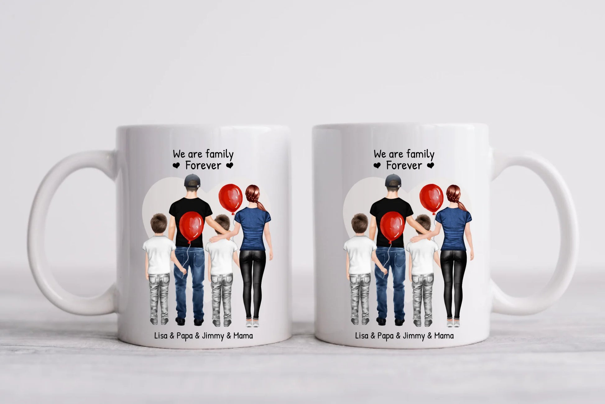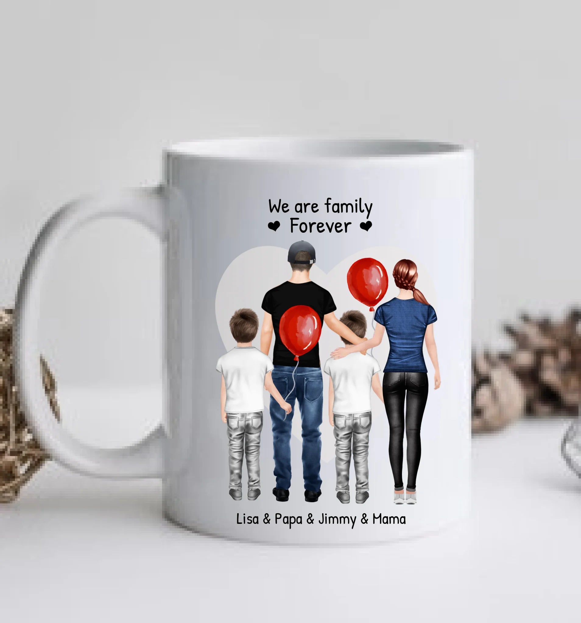 Personalisierte Tasse mit Familie 2 Kinder | Mama, Papa, 2 Kinder, Sohn oder Tochter | Geburtstagsgeschenk - Weihnachtsgeschenkidee