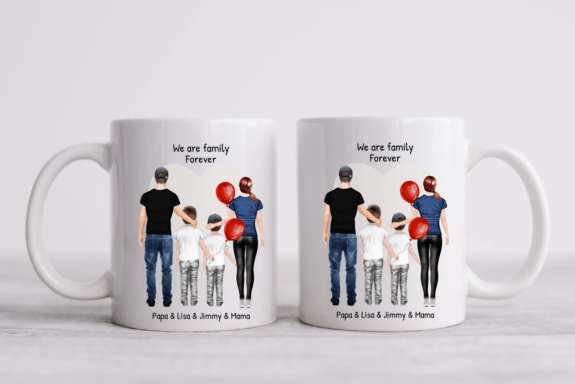 Personalisierte Tasse mit Familie 2 Kinder | personalisierte Tasse Mama, Papa, 2 Kinder, Sohn oder Tochter | personalisiertes Geburtstagsgeschenk | Weihnachtsgeschenk