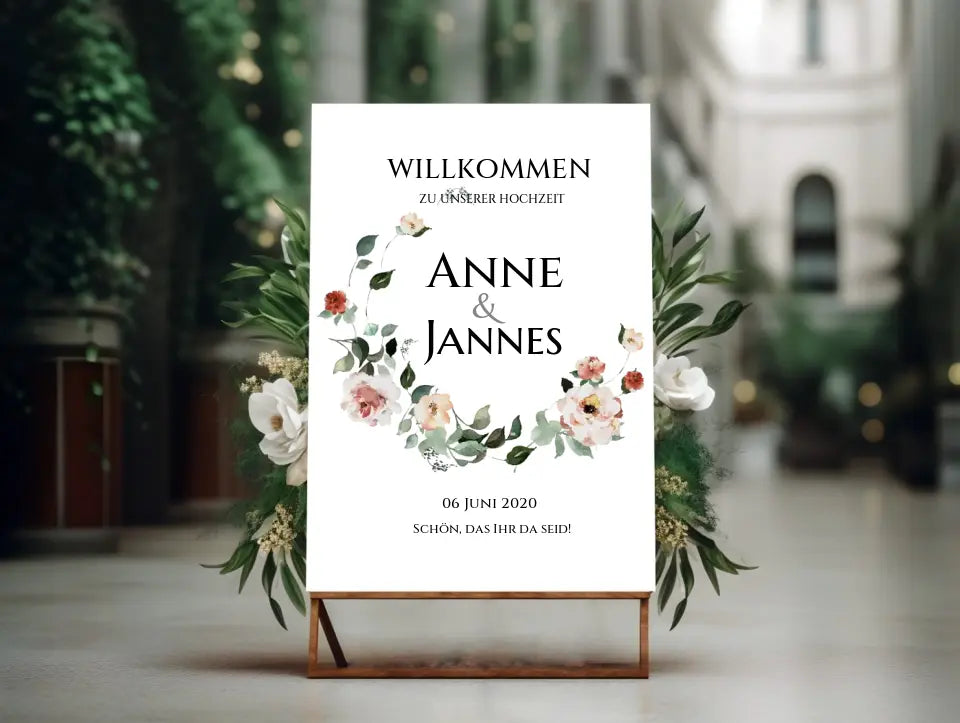 Willkommensposter Hochzeit | Willkommensschild Hochzeit personalisiert mit Namen Datum | Hochzeitsempfang Schild