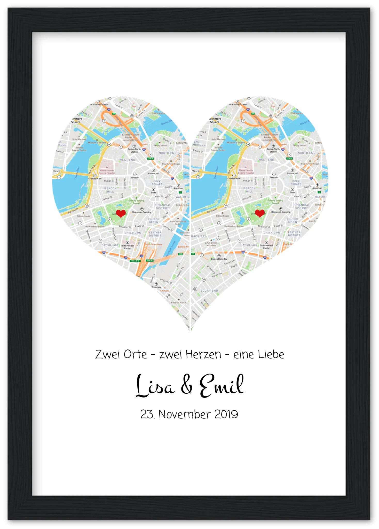 Wo alles begann Poster | Personalisierte Stadtkarte mit Herz - 2 Orte, ein Herz -Kennenlernorte - Städtekarte - Hochzeitsgeschenk-Hochzeitstag Geschenk- Glückwünsche-Hochzeitswünsche
