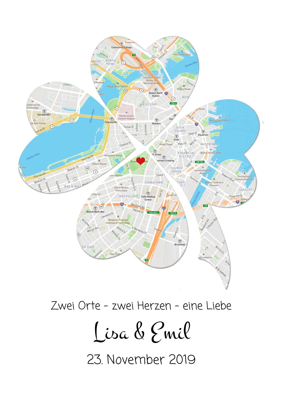 Wo alles begann Stadtkarte Motiv Kleeblatt - Fleece Decke - Hochzeitsgeschenk - Geschenk Weihnachten - Geschenk Hochzeit